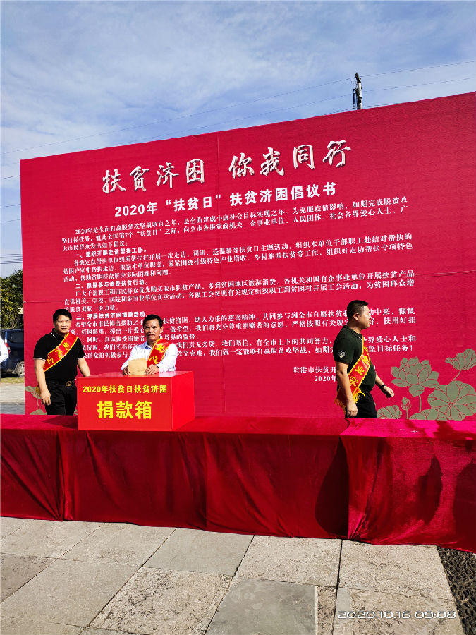 华体会平台董事长杨文友代表集团参加全国“扶贫日”贵港市系列活动,并作为爱心企业进行捐款,承担民营企业社会责任。